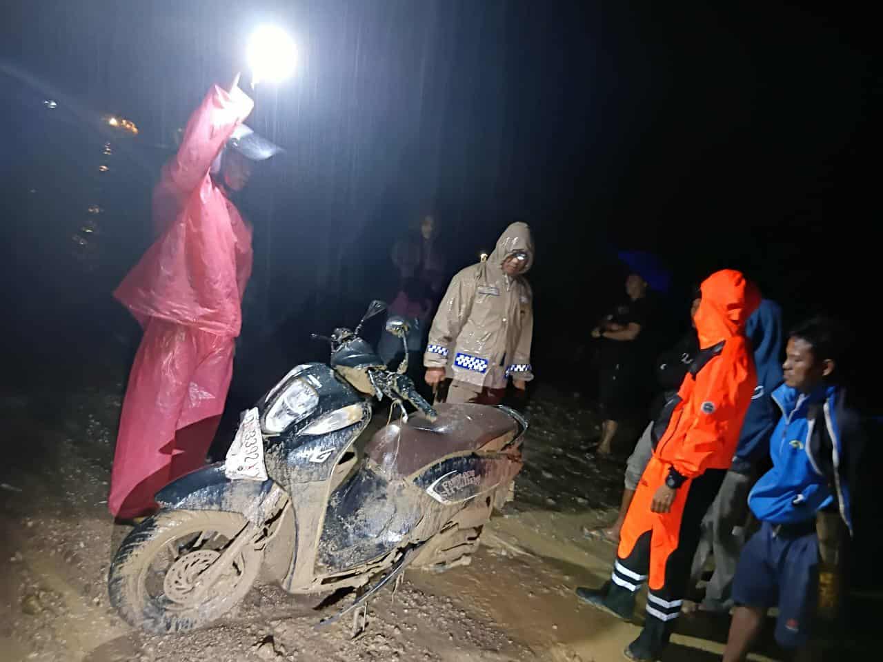 Satu unit kendaraan roda dua yang berhasil dievakuasi dilongsoran di ruas Jalan Trans Sulawesi, jalur Kebun Kopi, Kilometer 8, Desa Toboli Barat. (Foto : Polres Parimo)