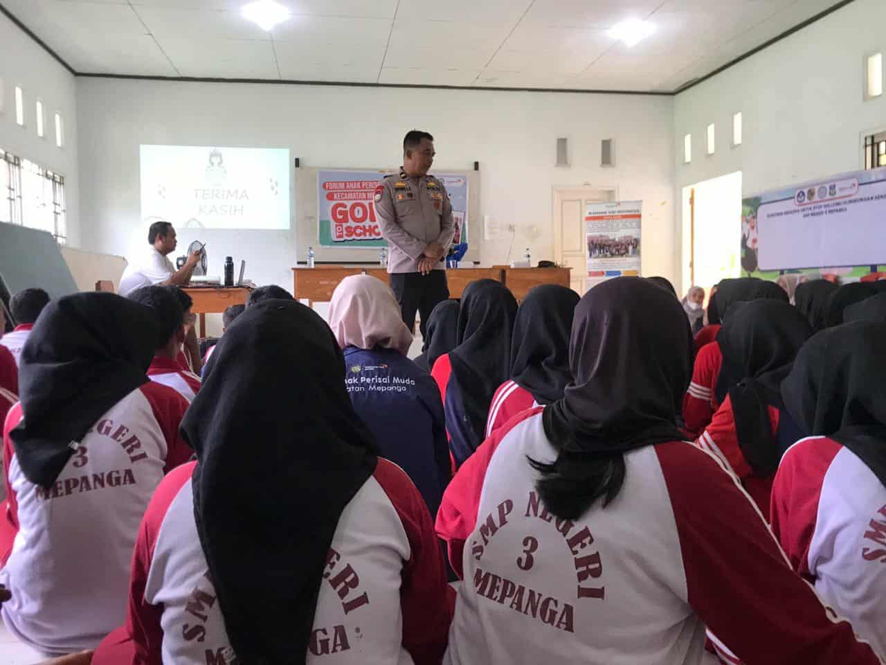 LOCUSNEWS, PARIMO – Kapolsubsektor Mepanga, Ipda Yayang Luki E., bersama Forum Anak Perisai Muda Kecamatan Mepanga, menggelar kegiatan “Goes to School” di SMP Negeri 3 Mepanga, Desa Kayu Agung, Kabupaten Parigi Moutong, Jumat (1/11/2025).