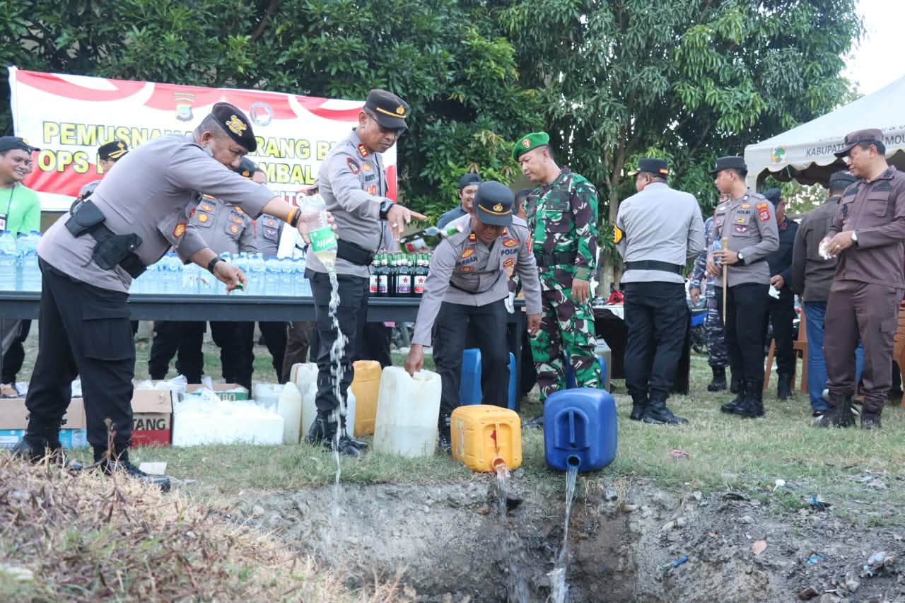LOCUSNEWS, PARIMO — Komitmen Polres Parigi Moutong (Polres) dalam menekan penyakit masyarakat kembali ditunjukkan. Sebanyak 515 liter minuman keras (miras) ilegal hasil Operasi Penyakit Masyarakat (Pekat) II Tinombala 2025 dimusnahkan secara terbuka, sebagai langkah tegas menjaga stabilitas keamanan dan ketertiban masyarakat (kamtibmas).