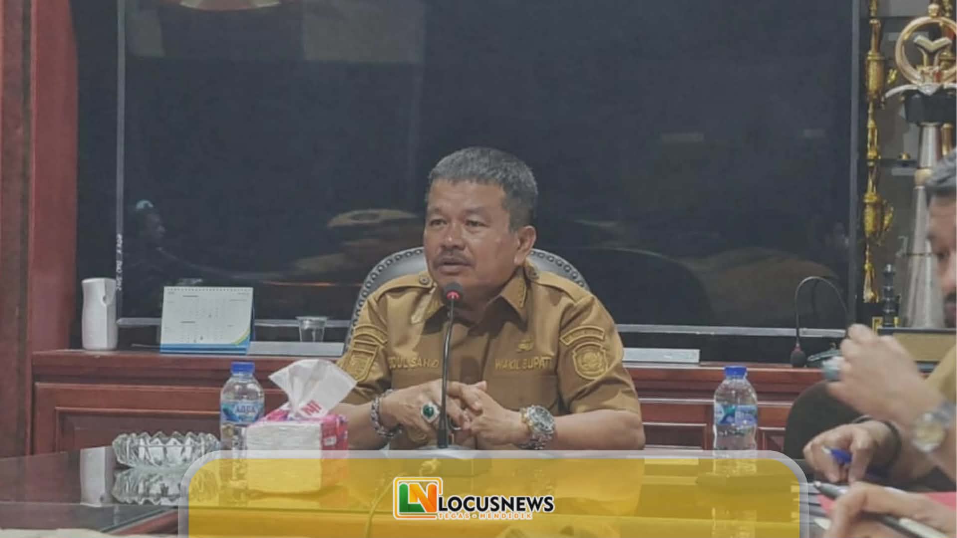 Wakil Bupati Parimo, Sahid menyampaikan pandangan dalam pertemuan bersama LBH Rumah Hukum Tadulako di ruang rapat bupati, Senin 30/3/2026. (LN/Bambang)
