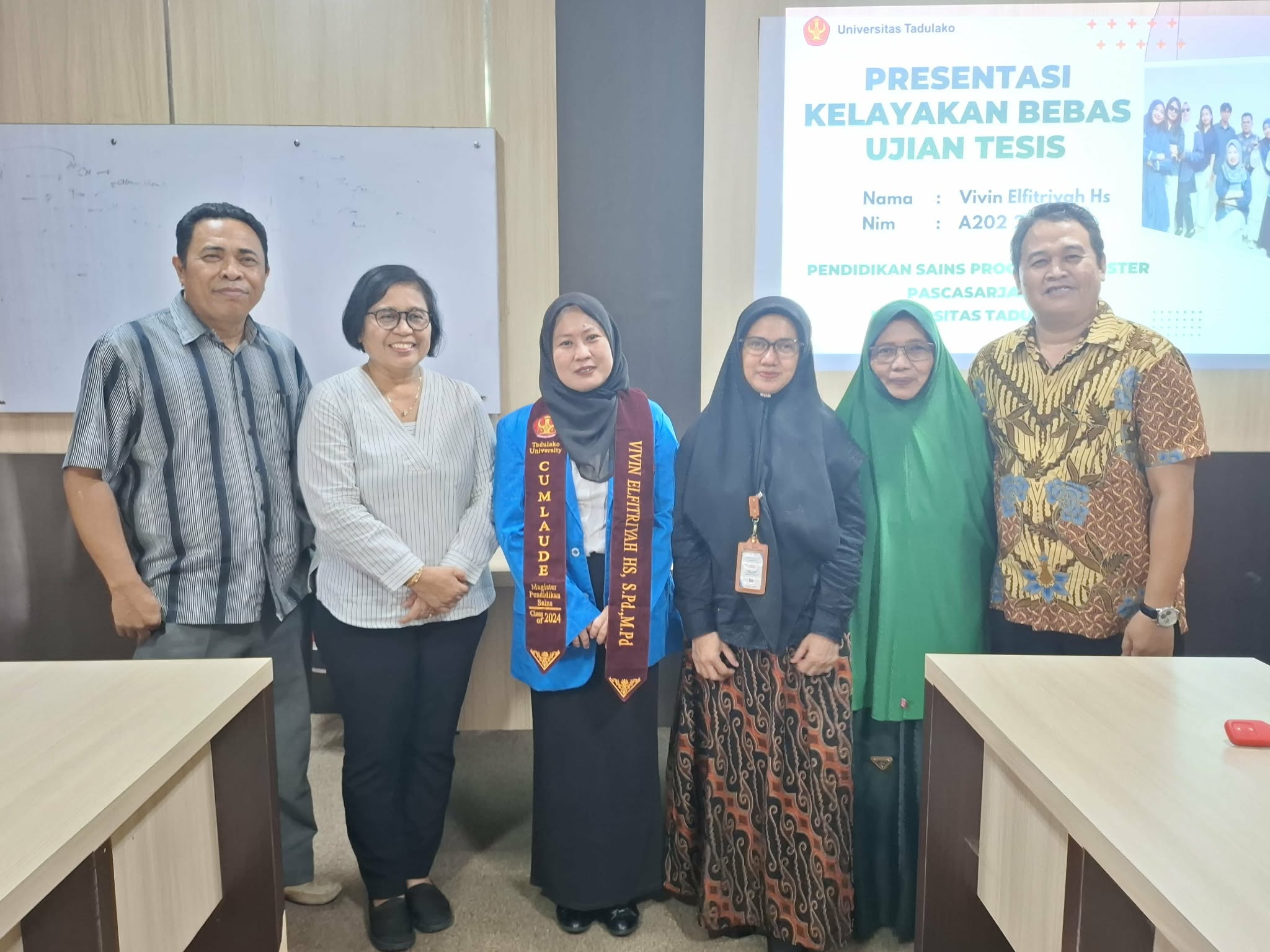 Momen itu terjadi dalam ujian tutup yang digelar pada Kamis (16/4/2026). Di ruang ujian Pascasarjana, Vivin tampil percaya diri di hadapan para penguji. Nilai A yang diraihnya menjadi penegas perjalanan akademik yang tak mudah.